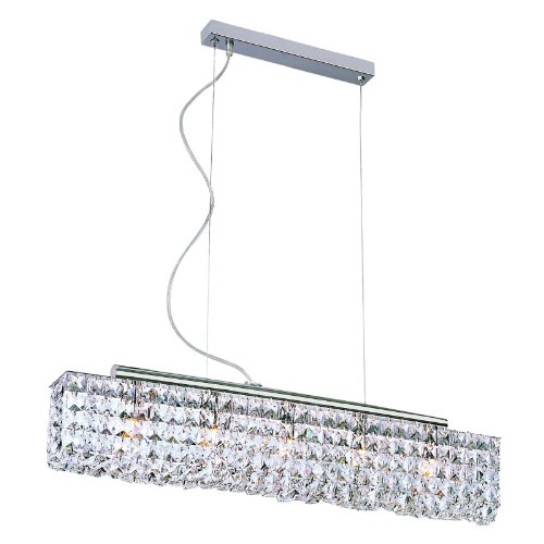 Five Light Pendant in Chrome?MDN-827 Features: -Pendant.-Modern style.-Clear glass shade. Construction: -Metal construction. Color/Finish: -Chrome finish. Specifications: -Accommodates (5) 40W G9 halogen bulb. Dimensions: -Overall dimensions: 27.5'' H x 35.41'' W.