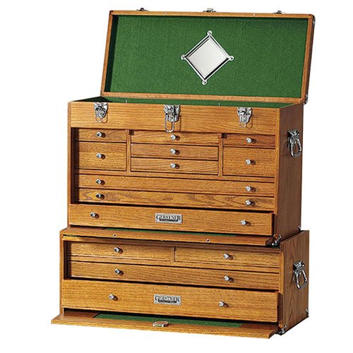FeaturesAll chests are made of solid red oak.Tongue and groove construction.Felt interiors.Hand rubbed stain and lacquer.Polished chrome locking hardware. GERSTNER INTERNATIONAL CHEST AND BASE SET GERSTNER INTERNATIONAL - Includes 10 Drawer Top Chest - MODEL: GI-532 Dimensions: 24" x 10" x 16-1/4" & 4 Drawer Base - MODEL: GI-B532 Dimensions: 25-1/8" x 11-1/8" x 10"?