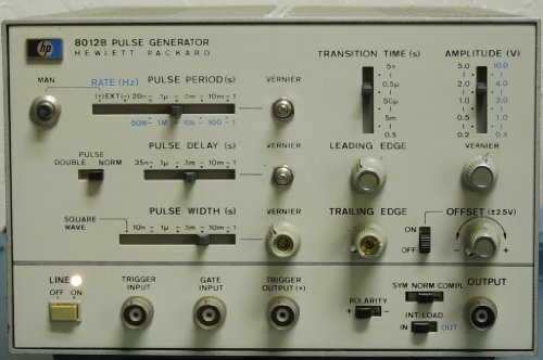 #This is an extremely flexible pulse generator from the experts at HP, with variable rep rate, delay, width, amplitude, DC offset, square wave output and wave shaping capability.