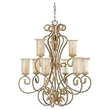 Sea Gull Lighting 31415-813 Nine-Light Windsor Manor Chandelier with Excavated Pearl Glass Shades, Sandstone Finish