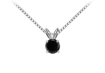14K White Gold : Round Black Diamond Solitaire Pendant - 1.25 CT. TW. 14K White Gold : Round Black