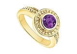 Amethyst with Bead Trimmed Solitaire Ring : 14K Yellow Gold - 1.00 CT TGW Size 6.5