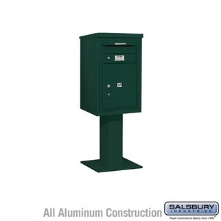4C Pedestal Mailbox (Includes 26 Inch High Pedestal and Master Commercial Locks) - 7 Door High Unit (55-1/8 Inches) - Single Column - Stand-Alone Parcel Locker - 1 PL5 with Outgoing Mail Compartment - Green