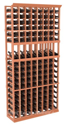 #The 8 column design is popular among collectors starting to get serious about cellaring their wine. Store almost 12 cases and display 8 of your favorite labels. Available stained or natural, features include full 12 1/4" depth bottle supports that hold the entire length of your bottles.
