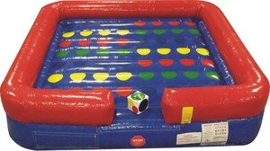 Inflatable Bouncy Interactive Twister Game Includes 1.0 Hp Blower Inflatable interactive games are a great addition to your party or bounce house rental business. This bouncy twister game features a colorful, glossy finish that resists staining, and is easy to clean. Just like the original twister game, this inflatable will have you in knots. TentandTable inflatables use reliable YKK zippers and Velcro deflation flaps. All our games have integrated back flow flaps on fill tubes and deflation zippers to prevent sudden air loss in the event of a power failure. All our inflatables include one straight blower and one angled blower tube for space saving. No raw edges, all seams are hemmed where applicable. The Rhino Tuff Seam is extra-strong and used on all high wear areas. Our seam is designed to move the stress load back several inches from where the normal point of impact would be, virtually eliminating repairs where a wall meets the floor. Engineered and assembled using double, triple, and in some areas 6-way box stitching to ensure this unit will last for years to come. High stress points are reinforced where applicable by adding an additional layer of material. TentandTable inflatables are backed by a 1 year free from manufacturing defects warranty. TentandTable is a manufacturer of High Quality, Commercial Grade inflatable bounce houses, slides, water slides, inflatable obstacle courses, interactive inflatables, tables, chairs, blowers, carts, and more. Our mission is to provide high quality, durable, and safe products for your party rental or bounce house rental business. | Inflatable Bouncy Interactive Twister Game Includes 1.0 Hp Blower