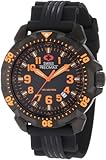 | ✚✚✚ Swiss Precimax Men's SP12113 SuperNova Black Dial with Black Polyurethane Band Watch Innovative down to the very last detail, this superb timepiece is a reinvention of a classic watch design while incorporating modern functions and features for the every day. The true focal point of this watch is its sleek black dial with striking orange hands and orange dial and bezel markers. These details are accented further by prominent BlazeMaxTM tritium hands and dial markers, embellishing the watch face with incandescence that is sure to be the center of attention. The high-quality polyurethane band binds to the wearer the solid black stainless steel case, which houses a precise Swiss movement ensuring an accurate timekeeping tool for a multitude of scenarios. Additional features include a screw-down crown, SapphimaxTM crystal, 100M water resistance, date display, and buckle clasp.