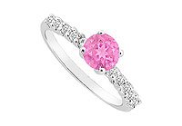 Pink Sapphire and Diamond Engagement Ring : 14K White Gold - 0.50 CT TGW Size 7.5